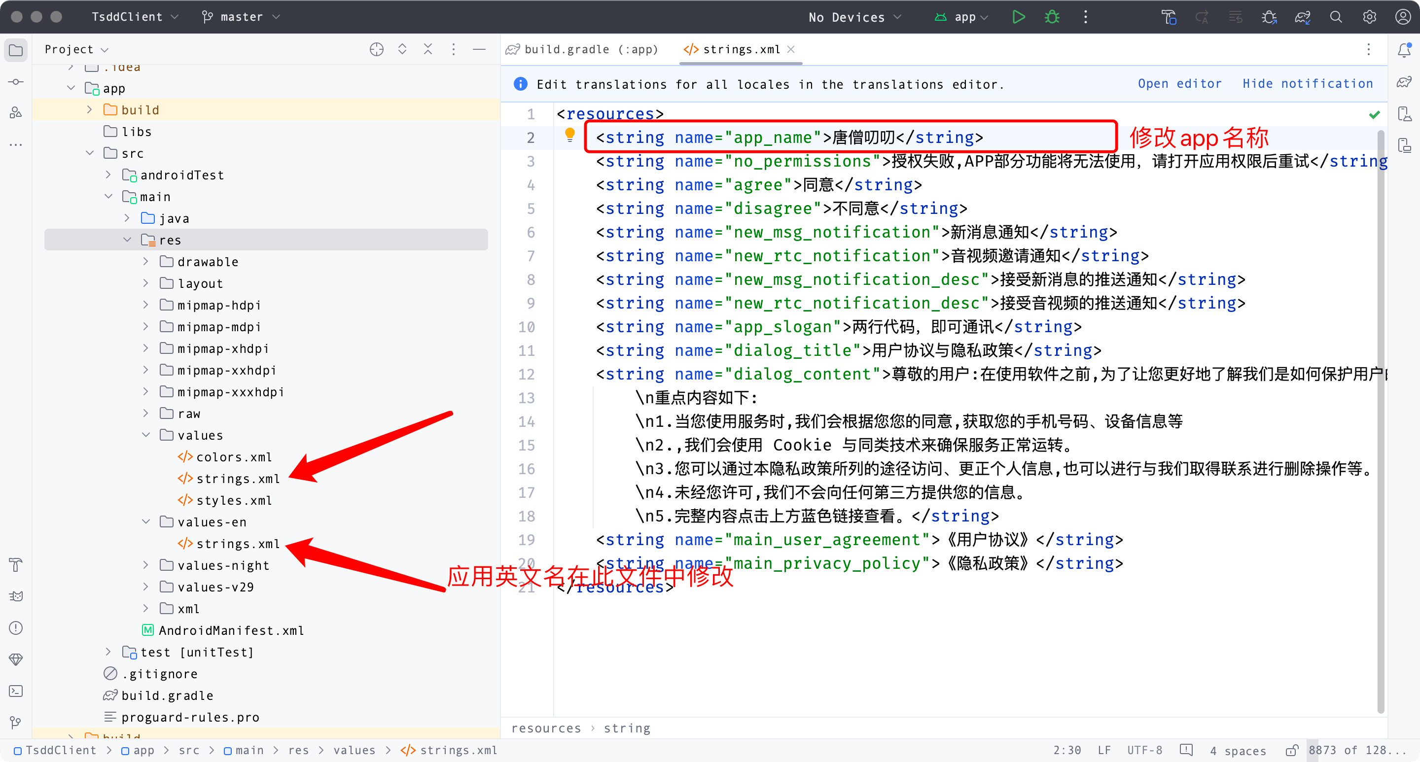 Android studio Open TangSengDaoDaoAndroid修改应用名称